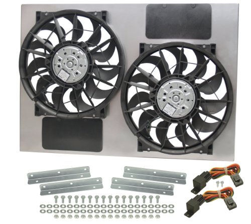This high performance primary cooling fan kit combines two high output 265 watt Bosch motors and a sturdy laser-cut powder coated metal shroud with pressure relief vents to produce one serious dual electric fan setup. Designed for puller applications, It's perfect for muscle cars, street rods and heavy duty trucks, this combination produces 4,000 CFM while each fan draws 24.8 amps. Includes mounting brackets, hardware and two high amp relay harnesses.